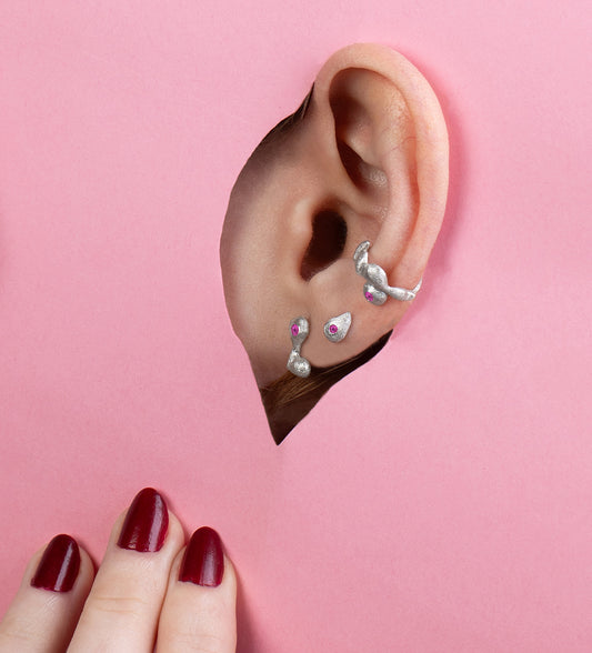bobbles ear cuff silver & pink sapphire