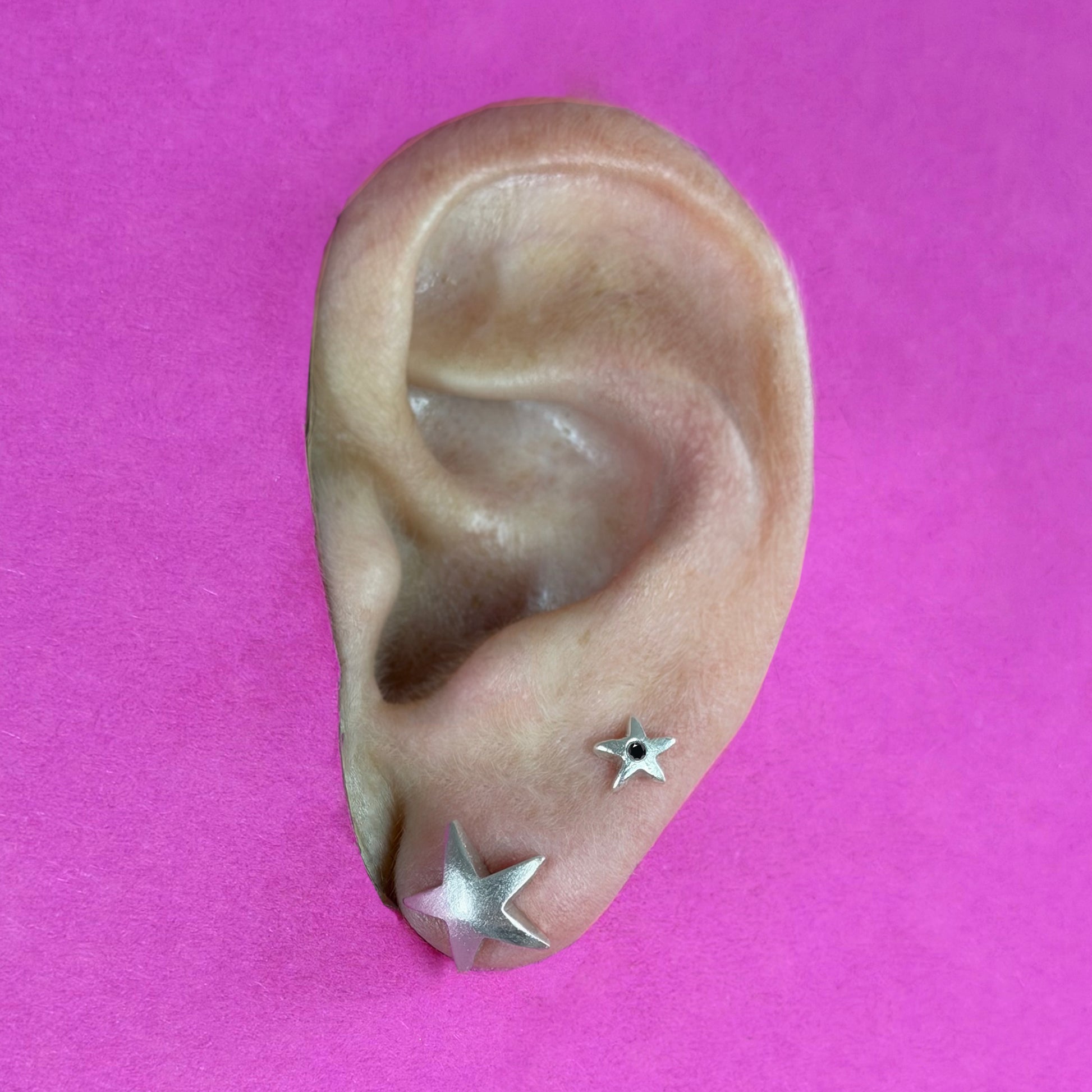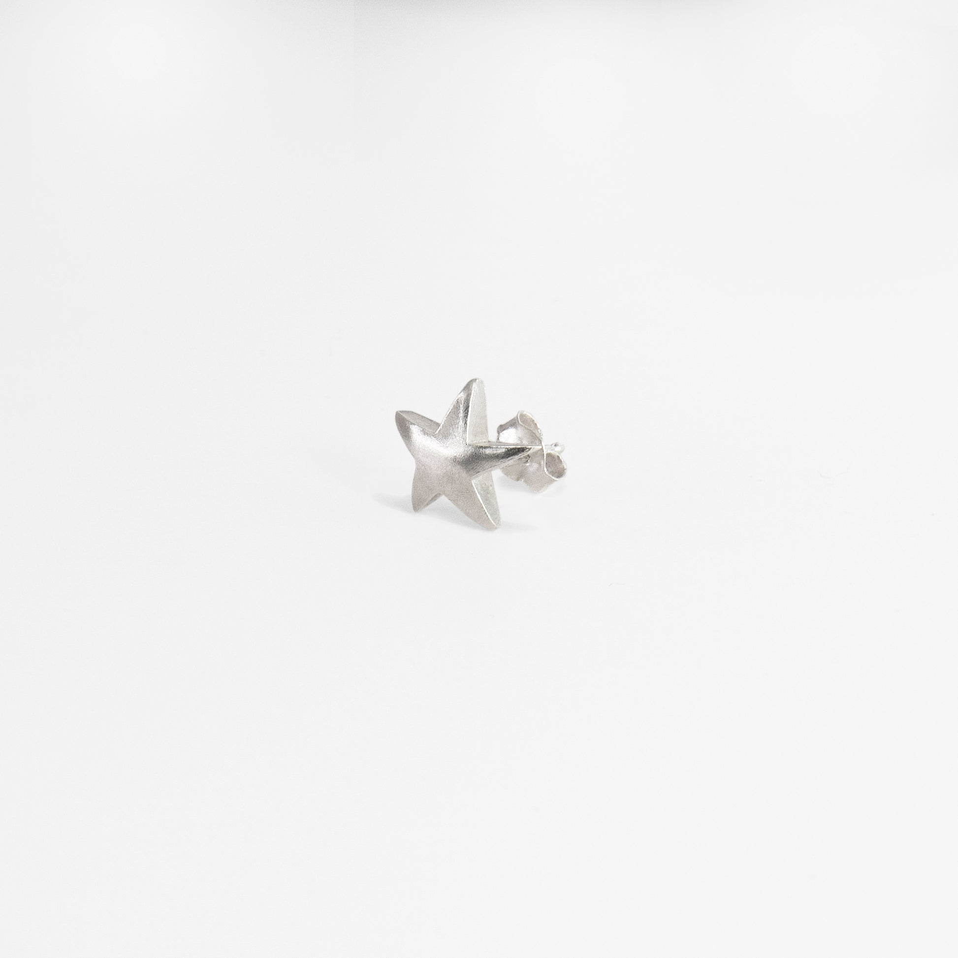 The mega star stud is a bold, sculptural take on a classic star motif. Hand-crafted in sterling silver, its crisp, angular form gives the piece a strong graphic presence, while subtle surface textures keep it feeling raw, modern, and effortlessly cool. It’s striking enough to stand alone, yet minimal enough for everyday wear.